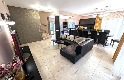 Holiday home with pool and whirlpool only 100 metres from the beach is located in Siofok. Holiday home with pool and whirlpool only 100 metres from the beach provides accommodation, featuring Wellness Facilities, Barbecue/Outdoor Cooking, Entertainment, among other amenities. This House features Wellness Facilities, Barbecue/Outdoor Cooking, Entertainment, to make your stay a comfortable one.