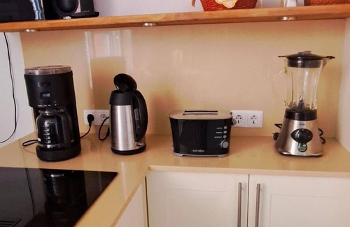 kitchen: coffee machine; dishwasher; freezer; fridge; induction stove; microwave; oven; toaster; water boiler;