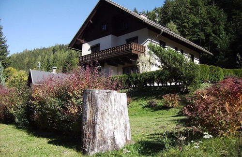 house enzo for 12 persons with wlan/dsl a1 internet power + 1 child up to 9 yearsoutside area: balcony; garage; garden available; garden furniture; grill; parking space available; private parking space; terrace;house information: 2nd double bed; bathrooms: 2; bedroom; detached building; property area: 1350 m²; year of renovation: 2020;living area: cable-tv; satellite-tv; stereo system; telephone; tv; woodburning stove;bath/wc: bathtub; hairdryer; toilet;kitchen: coffee machine; electric stove; espresso machine; freezer; freezer; fridge; microwave; oven; stove; toaster; water boiler;other: fishing; heating; internet; mountain view; mountainous environment; non-smoking object; pets allowed: max 2; Sauna; Vacuum cleaner; Washing machine; Wifi;Distances (linear, approx.): Distance cross-country skiing: 2,00 km; Distance to airport: 45,00 km; Distance to cable car: 8,00 km; Distance to cafés/ restaurants: 5,00 km; Distance to lake: 8,00 km; Distance to railway station: 35,00 km; Distance to shopping: 1,00 km; Next location: 35,00 km;Short descriptionOther : Non-smoking houseSurroundingNearby sports facilities : Fishing, Golf course, Riding possibilitiesGarden and outdoorGarden facilities : Garden furniture provided, GrillOn-site leisure facilities : SaunaFeatures of the property: Object in residential areaOutside area: Garden available; Grill; Parking spaces: 1; Private parking space; Terrace;House information: 2nd double bed; 2nd single bed; Bathrooms: 2; Bedroom; Detached building; Floor: 0; Property area: 1350 m²; Total number of floors in the building: 1; Year of construction: 1965; Year of renovation: 2020;Living area: Cable-tv; Fireplace; French bed; Satellite-tv; Sound system; TV; Woodburning stove;Bath/WC: Bathtubs; Toilet;Kitchen: Coffee machine; Espresso machine; Freezer; Fridge; Microwave; Oven; Stove; Toaster; Water boiler;Other: Cable internet; Child/baby bed; Forest; Games for adults; Games for children; Heating; Mountain hut; Mountain view; No youth groups; Non-smoking object; Pets allowed: max. 2; Vacuum cleaner; View; Washing machine; Wifi all-inclusive package;Distances (linear, approx.): distance to airport: 45,00 km; distance to cable car: 2,00 km; distance to cafés/ restaurants: 5,00 km; distance to food market: 1,00 km; distance to lake: 8,00 km; distance to railway station: 35,00 km;short descriptionother : non-smoking housegarden and outdoorgarden facilities : grill