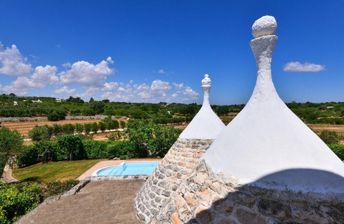 a careful restoration has brought the trullo, which dates back to 1800, back to its original splendour Today it is a dwelling full of charm for its typical stone vaults, its niches, its cosy and welcoming spaces just like in the past. It consists of a living room, a kitchen equipped with washing machine and dishwasher, two double bedrooms and two bathrooms inside the rooms. From its garden with a private swimming pool there is a beautiful view of the surrounding countryside.