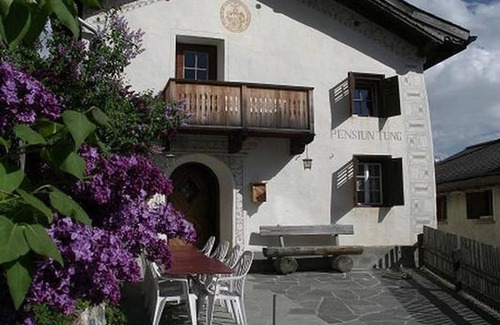 this two-storey engadin house offers room for up to 11 people Its 182 square meters provide a beautiful home for your vacation in the Engadin and caters in particular for families with children, or groups of people. Internet access is available for CHF 3 per hour. There’s a total of six bedrooms, of which four have twin beds, two have French beds (140 x 160 cm), with an additional child’s bed in one of these. Some rooms have washbasins. There are three bathrooms, one with a shower, one with a bathtub; a newly renovated kitchen with modern devices such as microwave, coffee-machine, etc.; a beautiful living- and diningroom (40 m2), comprising a wood-panelled room with wooden floor, with a corner seat, couch and TV.