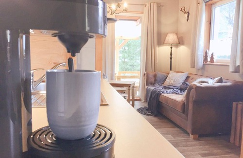 a special highlight is our infrared sauna in our own sauna house Soothing warmth and deeply relaxing radiation are just the thing after an eventful day! Afterwards, relax in our integrated relaxation area and let your mind wander. But nothing beats a good night's sleep! On the ground floor you will find our small bedroom with a box-spring double bed, which ensures optimum sleeping comfort. Because only those who sleep well can face the next day with new energy. In bedroom no. 2, which is spread over the entire upper floor, you will also find a box-spring bed for two people as well as a single bed and a solid baby cot. If you are our guest in winter, you will certainly love our fireplace in the open-plan living area. It spreads a cosy warmth that makes you feel at home, especially on cold and uncomfortable days. The flickering flames in the fireplace and the moving flames will calm your body and mind. Relaxation is guaranteed! The open-plan living area with cosy seating and a Smart TV is integrated into our very well-equipped kitchen with a rustic bench and a wooden table where you can enjoy hearty meals together.