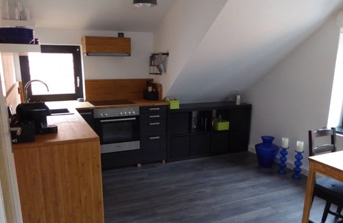 the non smoking rental is located in the attic of an apartment building, which is in a busy only by local residents impasse over a small stream The 55 m² apartment has a spacious luxury bathroom and a modern living area, which also houses the new kitchen is located with dining area. The two bedrooms that are connected by a passageway, complete the cozy apartment.