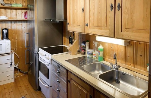 as you settle into this 3-bedroom, 1-bathroom rental, you'll find a bbq grill, a fireplace, and a desk Connect to the internet, or get cozy in front of the TV; there's also a DVD player. The kitchen is equipped with an oven, a refrigerator, and cookware. And because there's a washing machine, you can go a bit lighter on your packing. Other amenities include heating and a desk chair.