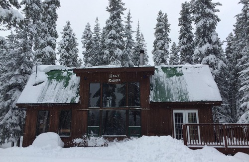 holy smoke was built in 1957 Holy smoke has a long history for being a local booze can/ party scene w large Igloo parties in the backyard and the main cabin converted into a bar w dance floor. For a long time Holy Smoke was considered the largest cabin on the hill. Come enjoy a piece of Apex heritage :).