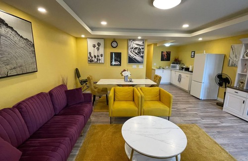 step inside to find a spacious living room complete with a 55" smart tv, perfect for unwinding after a long day The well-equipped kitchen boasts all the essentials including utensils, microwave, fridge, and freezer, making it easy to whip up a quick meal or snack. Stay connected with free Wi-Fi and enjoy the convenience of free parking for one car during your stay. Plus, take advantage of the convenience of a washer and dryer right at your fingertips.