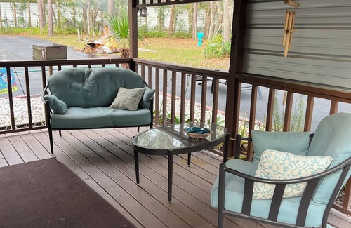 Enjoy a peaceful stay in our fenced and gated home surrounded by nature. The private 1-bedroom home features a covered porch for relaxing and bird watching. The cozy bedroom loft features a comfortable queen bed and separate A/C for the perfect night's sleep. Amenities like WiFi, a hair dryer, games, and well equipped kitchen help guests feel right at home. The bathroom is equipped with a shower and additional amenities. Birds are in abundance and a daily visit from American Bald Eagles. Owners live on opposite side of property (in separate home), working towards sustainability in their greenhouse. The property is completely surrounded by a 14-20’ metal fence with gates for ultimate privacy. Outdoor furniture, loungers, fire pit, board games and grill are readily available to use. This is a place to unwind after a day of travel or reboot and soak in nature. We are new to VRBO, but not to hosting. Check out our reviews on the other hosting site that starts with an A!.