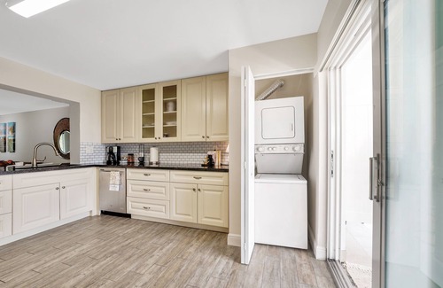 *fully equipped kitchen Coffee machine, toaster, blender, Ice maker, cookware, glassware, dishwasher, teapot, refrigerator with filtered water dispenser, microwave, stove, and oven.