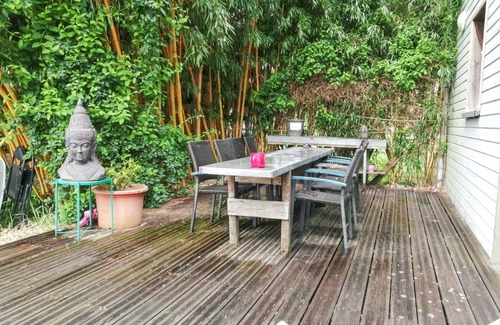 outside, you will be greeted by a beautiful private garden with a swimming pool open from april 11 to august 31 Relax on the terrace overlooking the garden or enjoy a warm summer evening grilling under the stars. The fenced area ensures privacy and safety for family and friends.
