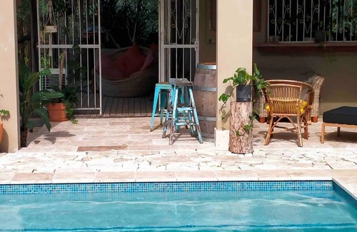 a subtropical haven Listen to birdsong and the ocean. Open the huge sliding doors whilst using one of the 2 full length decks, relax on daybeds, a hammock or the love seat.