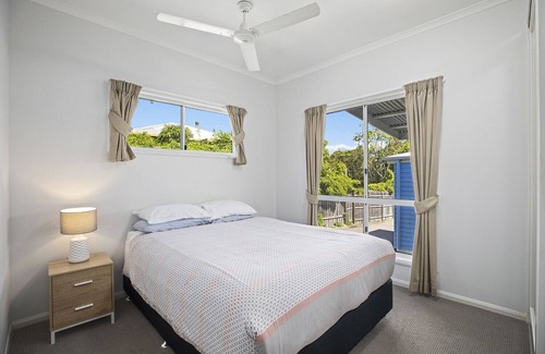 this teal-coloured bungalow includes free wifi, bbq, aircon and washing machine