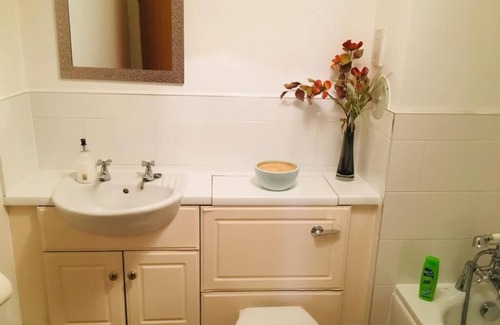 Beautifully presented two-bedroom apartment on the ground floor of a modern block of flats located on the fringe of the New Town. Safe and peaceful location with easy access to and from the city centre of Edinburgh. Free residential parking. Two comfortable bedrooms, two bathrooms and a fully-equipped kitchen. Tastefully decorated, bright and spacious.