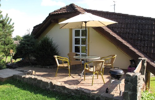 Slemeno, 2 km from Dolní Kalná: Modern, beautiful 2-family house "Relax apartment", 400 m a.s.l.. 900 m from the centre of Slemeno, on the outskirts, 5 km from the centre of Hostinné, 13 km from the centre of Jilemnice, 6 km from the skiing area. For shared use: property 1'200 m2, lawn. Private: swimming pool (above ground) round (3,6 m diameter, depth 80 cm, seasonal availability: 01.Jul. - 31.Aug.). Terrace, garden furniture, barbecue, fireplace, parking (for 2 cars) at the house. Shop 2 km, supermarket 5 km, restaurant 4 km, bus stop 900 m, railway station "Hostinné" 5 km, outdoor swimming pool 3 km, indoor swimming pool 13 km. Golf course (18 hole) 20 km, walking paths from the house, cycle lane 50 m, ski lift 16 km, chair lift 20 km, slopes 6 km, ski rental 16 km, ski school 16 km, children's ski school 16 km, cross country ski track 6 km. Nearby attractions: Jilemnice 13 km, Zvičina 15 km, Vrchlabí 16 km, Trutnov 17 km, Pec pod Sněžkou 34 km, Zoo Dvůr Králové, zámek Kuks (UNESCO). Well-known ski regions can easily be reached: Kněžický vrch - Vrchlabí 16 km, Mladé Buky 20 km, Pec pod Sněžkou 34 km. Well-known lakes can easily be reached: Dolce 18 km. Please note: the owner lives in the same residence. Owner lives in separate semi-detached house. Separate grass pitch available including goals and net for ball games.