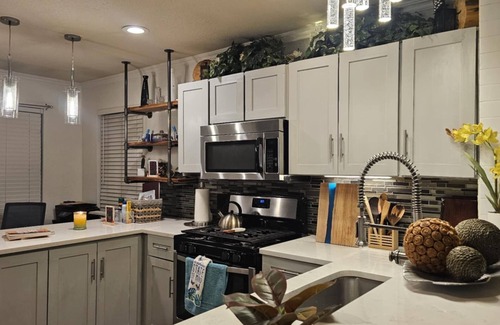 a short 20 min drive to austin & 15 min to lake travis you will have a lot of family fun in this cute newly remodeled 1200 sq ft home w/wifi (300 mbps), 75" smart tv+2 more tv's w/dedicated work space too