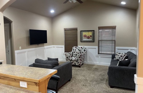 great house by the park. 3 beds 2 baths, big back yard, lots of parking. You are literally a few hundred feet from playgrounds, softball fields, a skate park, and a few blocks from the new aquatic center, and one of the best golf courses in utah.there is a ring camera on the front porch.