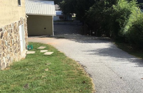 This duplex rental home in downtown Franklin is available for rent year round. This vacation home is a two bedroom/one bath upstairs (1500 sq. ft.), and the lower unit is a one bedroom/one bath (1200 sq. ft.) Home is within walking distance of shops, restaurants, museums, and entertainment on the square. Gem mines are as close as 5 minutes away. Direct TV with HBO/Showtime is included when renting the property. Next to the house is a four-acre park with basketball court, picnic area, BBQ grills,children’s play gym, and walking paths for dogs. We are child and pet friendly!.