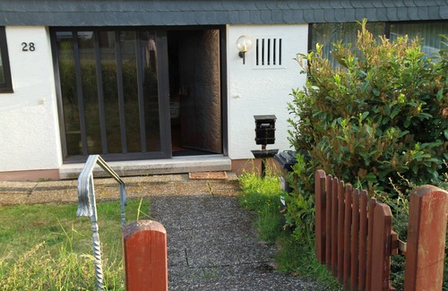 it is best to park your car in front of the house on the street (which is only traffic-restricted for residents) The house itself faces south and gives a clear view over the small meadow that still belongs to the property, over the Bosbach surrounded by meadows and the row of villages beyond to the wooded hills opposite..