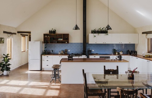 House of Mud & Straw sits solidly & silently on open paddocks shared with cows & the sweeping weather. Kick back, cook, play tunes, do puzzles, drink wine, snooze & be merry with your favourite faces (sleeps 10) in this comfy, stylistic, earthy farmstead. Feather & linen beds, pianola parlour, loft chill out space, vintage sitting room, cosy nooks & curated creature comforts. A two minute walk to the historic corner pub. Close to all things Daylesford & Hepburn regions. Walks, drives, gourmet trails. Insta @houseofmudandstraw.