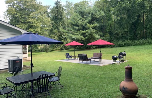this home is a cozy 3 bedroom bungalow style, with a newly remodeled bathroom, and kitchen There is a washer and dryer in the basement. All bedding/linens/mattresses are new. Towels are provided. The yard itself is set on 3 acres, and has a very comfortable outdoor space, plus sunroom. The trees around the house are filled with tree frogs, and there is plenty of room in the yard to stretch out and play some games. The Appalachian Trail goes right by the back of this yard, and winds up Quaker Hill, and connects with a few other trails. Bring a map, as there are many turns, and getting lost is easy.