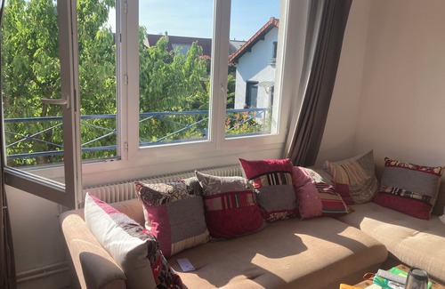 We rent our house of 157 m2 situated in a green and quiet spot just 5 min away from Paris by car. There is a big parking place in the garden or 2 tiny places. We have 5 bikes and 5 scooters ( for kids and adults). The house has 3 floors of 50 m2 each. There are 4 bed rooms, 4 double beds on single and a big sofa.