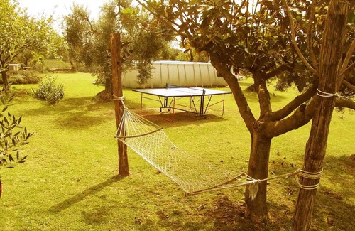 'Detached house immersed in the nature of the countryside close to the Roman castles. 8000square meters of private garden and olive groves. Home suitable for families with children. The silence is special about the house. The only cars that come are those who come to the house. The owners live in a house next door, where they produce the products that their land has to offer. For our guests, there are board games, ping pong table, small outdoor pool and other entertainment. During their stay, guests will be offered a tasting of typical local products (cheese, salami, bread and local wine). With all the comforts, the house is not only ideal for a relaxing holiday in a natural and genuine taste, but also to visit the interesting surroundings : GIULIANELLO, historic medieval town with its small lake, which occupies the bottom of a crater of explosive origin.At 15 km you will find the gardens of Ninfa, declared a Natural Monument. TIVOLI with its wonderful villas (Villa Adriana and Villa D'Este), and its spa. Just 30 minutes by car There is Rome with all its treasures to visit, such as the Colosseum, Trevi Fountain and many other wonders. GREAT NEWS. 'Since April 2011, just 15 km is expected to open the playground largest 'Europe..