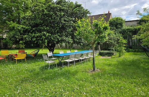 La Cerisaie is a large, cheerful and warm village house built in 1620 and fully renovated by an architect in 2012. In a quiet garden fenced with walls and perfectly secured for children with fruit trees and large hundred-year-old boxwood under which it is pleasant to take your meals or nap. The house with very thick walls stays cool when it is very hot outside. It is an ideal place for young children (games and inflatable pool) as well as for teenagers (table tennis, 5 bikes at your disposal and free tennis courts 200 m). The decoration is refined. It has a lot of charm. This property is composed of a main house with 4 bedrooms, bathroom and shower room and a guesthouse in the outbuildings (20 m from the main house). 2 very nice cats used to children live in the workshops and the garden. You do not have to worry about them. Linen for bed , towels for bathroom and tableclothes are included, aw well wood for the fireplace..
