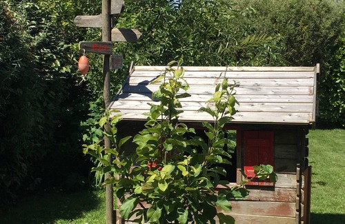 the enclosed garden with its 40 m2 terrace facing south west allows you to have a good time The house is ideal for one to two families with children. (indoor games) and the rich garden with its portico and trampoline will delight the little ones.