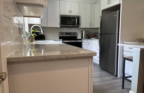 the beautiful gray house with spacious front porch entrance will be your charming place to stay, this home getaway offers 3 cozy bedroom accommodation and 2 full bathrooms The accessible ramp makes it inclusive for everyone in your party and you will have a private driveway with plenty space for your vehicles. Back patio outfitted with charcoal grill, table, and umbrella..