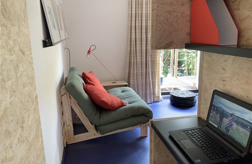 the kitchenette is equipped with a refrigerator, as well as a coffee maker, an electric kettle, and cookware Bathroom amenities include a hair dryer, towels, and toilet paper. And there is a laundromat nearby so you can pack a bit lighter. Other amenities include a sofa bed, bed sheets, and heating.