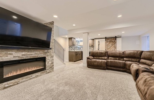 the basement has the laundry room, living area, bedroom, and wet bar! firelight features miles of paths & trails plus community events Enjoy upcoming tranquil views off the deck backing to a professionally maintained greenbelt!.