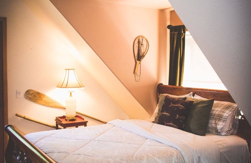 you will feel like royalty, the lodge contains 5 bedrooms with only queen and king sized beds with privacy and a luxurious master bedroom and bath Enter the master bedroom through rustic double doors into a suite with a red leather couch, you can only see in the movies, and a willow headboard against a king sized bed. the pasture view from the bedroom will amaze you, and will surely leave you feeling like a king or queen!