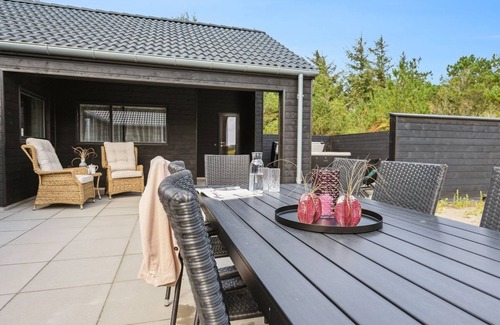 Single-family house, built in 2024. 500 m from the sea. Private: natural state property 2'576 m2, indoor pool (3 x 6 m, 1'9.8 m2, depth 140 - 140 cm). Outdoor shower, hot tub, barbecue. In the house: table football, trampoline, washing machine, tumble dryer. Parking at the house. E-charging station. Grocery 4.3 km. Golf course 8.5 km. The owner does not accept any youth groups.
