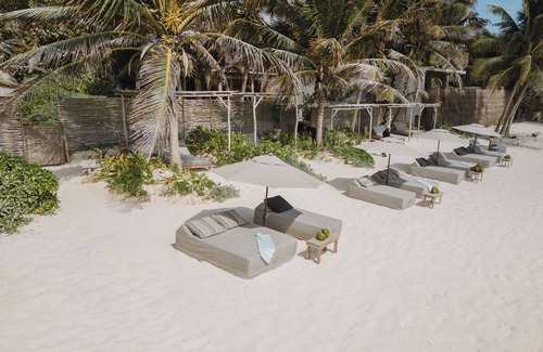 Tucked within the property's lush tropical gardens, Casa Chakté is private & eclectic in its design. The villa’s interior height in common spaces makes it both cozy and spacious, an ideal getaway for a family or small group of friends looking for a glam, bohemian experience. Accommodating up to six guests, Casa Chakté includes three spacious suites, with private bathrooms; a spacious living room; a fully-equipped kitchen and dining room; and an intimate private terrace with its own plunge pool.