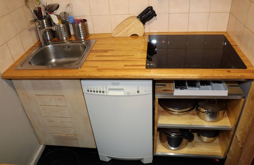 a sofa bed and a fireplace are featured at this 2-bedroom, 1-bathroom rental Enjoy the free WiFi, TV, and stereo. Prepare a home-cooked meal in the kitchen, complete with an oven, a stovetop, and a refrigerator, as well as a coffee maker, an electric kettle, and a microwave. And there's access to laundry facilities, so you can even pack a bit lighter. Other amenities include an ironing board, heating, limited housekeeping, and a dining table.