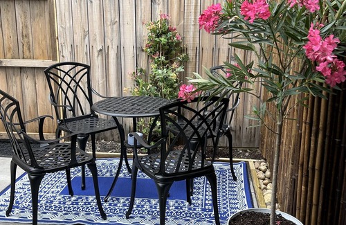 free high speed internet and basic cable are provided We also have an assortment of teas and coffees for your enjoyment as well as a DeLonghi coffee system for our coffee connoisseurs, along with a coffee grinder to make the most perfect cup of Joe. No worries, if a more simple coffee or tea is preferred .. a Keurig is also available. We offer a keyless entry system into our home for easy access to come and go as you please. For your convenience, we offer 2 complimentary parking spaces on the 1st floor of the covered parking garage, literally just a few steps away from the house.