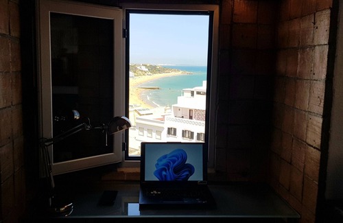 located in the old town of albufeira, this wonderful and comfortable apartment has the seafront of the town's main beach It is the ideal place for a romantic, friends or family holidays. The house has 2 bedrooms (sleeps 4) the access to one bedroom is through the other, 1 complete bathroom, an equipped kitchen (including dishwasher, microwave, etc.), clothes washing and dryer machine, air-condition (hot /cold 10 euros/day), and a comfortable living with a fantastic sea view.