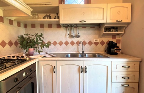 House "Il Frutteto", surrounded by trees and meadows. 1 km from the centre of Montescudaio, 8.5 km from the centre of Cecina, 10 km from the sea. Private: natural state property 1 ha, trees, meadow. Motor access (20 m via unmade road). Parking at the house. Shop 750 m, supermarket 13 km, shopping centre 7 km, restaurant 500 m, bakery 750 m, bus stop "Montescudaio" 500 m, sandy beach "Marina di Cecina" 10 km, rocky beach "Baia del Quercetano" 27 km, thermal baths "Calidario" 40 km. Nearby attractions: Bolgheri 16 km, Pisa 61 km, Firenze 97 km. Please note: 1st floor is closed and not occupied.