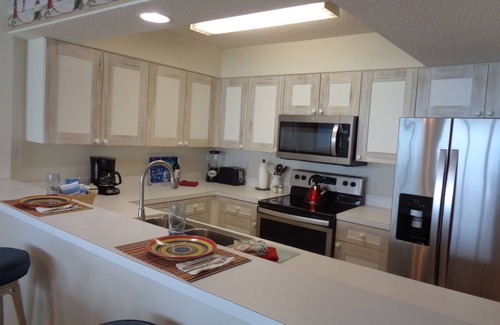 This is your opportunity to relax and refresh in style and comfort as our guests. Enjoy all the conveniences of home in our spacious, three bedroom (king,queen,and two twin beds),three full bath (master has jacuzzi tub), luxury condominium with fully equipped kitchen, full size washer and dryer. Flat screen TV's great for movies, DVR records any must see TV, DVD player can access your viewing subscriptions just like at home, wifi has you connected to the outside world from anywhere in the condo or on the balcony. BEST office view ever! Wake up each morning to the sound of surf and the sight of playful dolphins as you enjoy your coffee at sunrise from this private, peaceful, sixth-floor vantage point. This southeast-facing view is all yours! On the balcony you get sunshine to warm spring and fall early chill, shade and an ocean breeze to cool the summer afternoon heat. This is the best of all worlds and has something for everyone in the family. Mom can enjoy the spacious beach, the kids can play in the huge ocean side salt water purified pool, (a real treat for your skin!) Dad can take it all in from the balcony. No one needs to know he caught a nap in the Lazy Boy recliner! Feel the peace and security of our limited-access Windy Hill Beach neighborhood. Relax in our prestigious, quiet building. you live here! breathe!!
