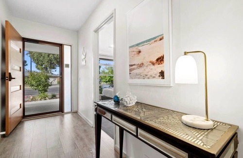 walk through the native front garden into the beautiful entry way through the wooden door where you can place you purse on the buffet table and pop your luggage into the master bedroom to the left Kick your shoes off and fall into the cushy king bed under the breeze of the ceiling fan. The master is also fit with a walk-in robe and ensuite including a vanity, toilet and walk in shower.