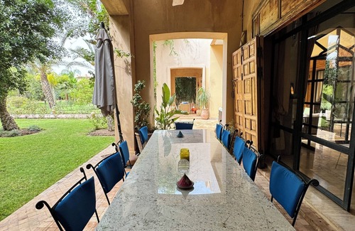 nestled in marrakech, this 7-bedroom, 7-bathroom villa brings it all within your reach Fans of nature and the outdoors will love being 18 minutes by car from Place des Ferblantiers and 35 minutes from Ourika Valley. If you'd like to explore the area, you can make the 21-minute drive to Jemaa el-Fnaa or the 17-minute drive to Majorelle Garden.