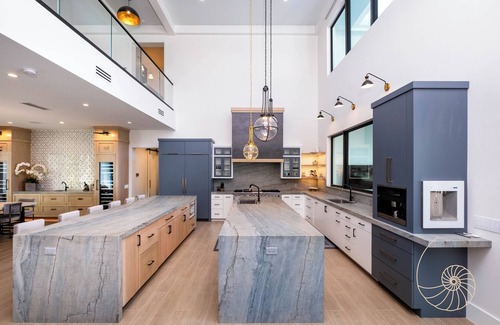 the focal point of the main house is the chef's kitchen, and it is truly a showstopper Equipped with top-of-the-line appliances, this kitchen is a dream come true for any foodie or home cook. Between the six-burner gas stove, two dishwashers, two wine fridges, a beverage fridge, an under-counter ice maker, a built-in water filtration system, and a coffee station, you’ll have everything you need at your fingertips. If cooking isn’t your thing, a private chef will shine in this space, preparing you and your guests a five-star meal in paradise.
