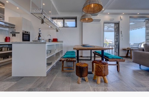 Modern and stylish interiors coupled with great outdoor areas make this villa a real treat. The Red Rock of Rhodes villa is a combination of mountain and sea that has been designed with contemporary architecture. Combining rock stone and minimal features which allow it to blend in with nature in a beautiful way. Also remarkable are the breathtaking sea views that can be enjoyed from most rooms of the house.Ocean view from each bedroom.
