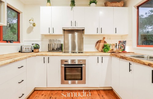 Samudrá at 1770 is a totally separated two-story, 3 bed 2 bath beach house located on the highest hill in the 1770 headland with insane views of the ocean. Surrounded by Eurimbula National Park on two sides, you have a huge wraparound deck overlooking the water in front, and a neighbour only to your right. If location and nature is your jam, you will be hard pressed to find a more ideally located home in 1770. A short stroll to the 1770 foreshore, but away from the road and people. MUST CLIMB STAIRS, not suitable for wheelchair access or elderly.