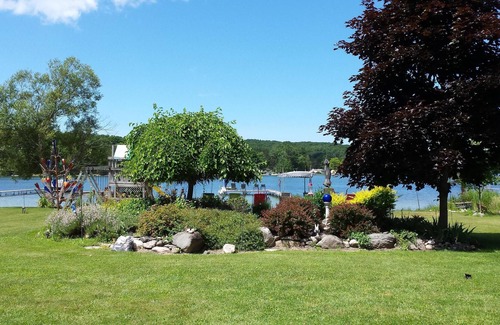 this is the place to be if you don't mind owner residing in the upper level and our 'mascot' dog Dog is always on a leash or a chain while outside! She loves people and children, she is a mixed breed from the shelter, a rescue dog. If dog an issue please let me know and I will keep her away during your stay, she is rarely out. Give me a call and reserve your spot. Lower level is completely private from rest of house, you have your own private entrance lake side and privacy door on interior separating upper and lower levels. You have as much privacy as you want.