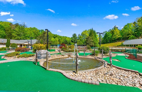 rumbling bald resort amenities include a heated pool (open year round) 2 outdoor pools and lazy river (open memorial day to labor day) hot tub, spa and wellness center, mini golf, basketball and tennis courts, corn hole, horse shoes, lawn games, playground 2 world class golf courses (Apple Valley and Bald Mountain). 3 Dining options (Legends on the Lake, The Gardens, Bears Cup Cafe, Eagles Nest).