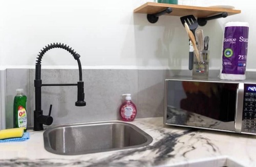 this apartment on the ground floor is newly renovated in 2024 and features black out curtains and a reggae theme