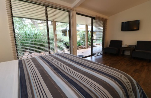 island bay has several areas for relaxing from the lounge games room with open fire to the dining room with cosy couches and extra tv (foxtel) through to the huge alfresco dining bbq area with second open fireplace and cafe blinds overlooking the playground, swimming pool & outdoor fire pit We provide ample firewood. Each cabin is airconditioned and has a TV and DVD, the resort stocks a huge number of DVD's for all tastes.