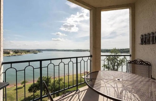feel welcomed, safe, and cared for in this well-stocked luxury condo with a private balcony and stunning lake views—even with low water levels