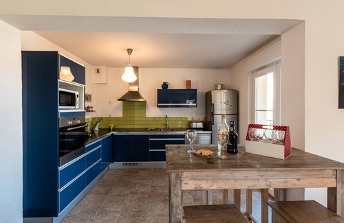 - an open kitchen equipped with: electric kettle, oven, microwave oven, toaster, dishwasher, hotplates, nespresso coffee pods..