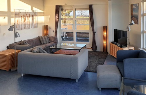This luxury house is comfortably and stylishly furnished and is located near Workum and directly on the water. It has its own jetty with swimming steps. There are 2 bathrooms in the house, one of which has a whirlpool for 2 people. This bathroom is accessible from bedroom 1. From the living room and the balcony on the 1st floor you have a wonderful view of the harbour, the Ijsselmeer lake and the surrounding area. Here you can enjoy excellent sailing, surfing and swimming. The beach is very suitable for small children as it is shallow. You can go kitesurfing nearby and lessons are available at many kitesurfing schools. The Frisian villages of Hindelopen, Workum and Stavoren and the Wadden Islands are well worth a visit.